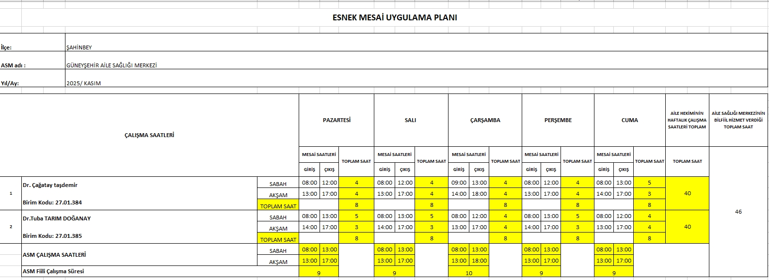 Çalışma Saatlerimiz